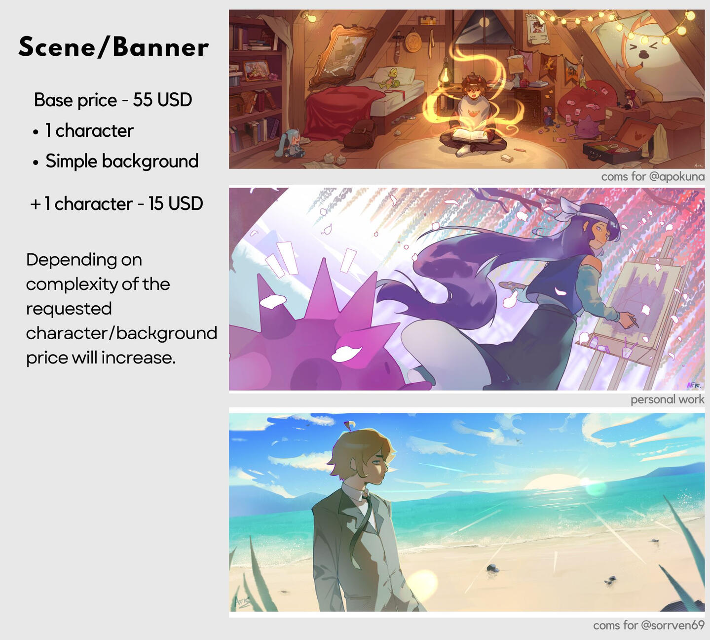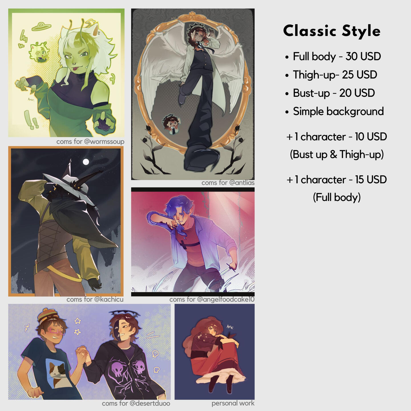 All commissions are for personal use only.Contact me via DM on Twitter or Discord @AFKarchive. Feel free to ask any questions!Status:4/4 slots